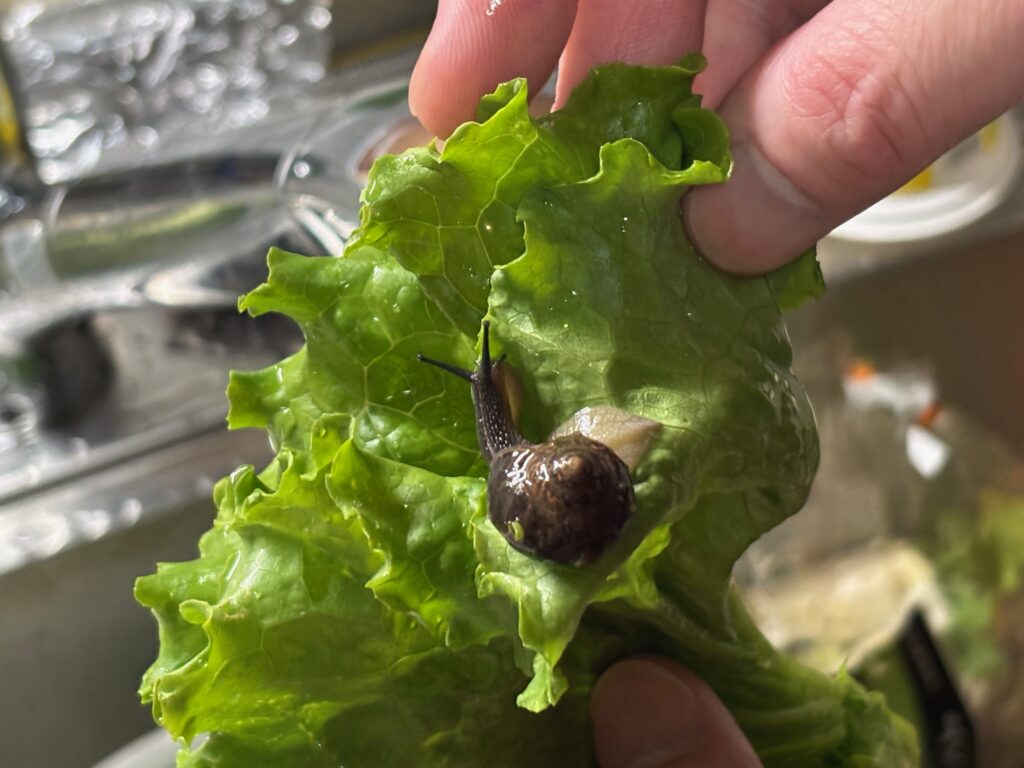 投稿日: 2025年6月1日 投稿者: 金ちゃん梅雨を告げし来訪者 神様へのお供えに届いた葉物野菜をしばらく水に浸し、いざ洗おうと手をかけた瞬間「⁉︎」つくねんとおはしまする首を伸ばしたマイマイさん(笑)、あなたもクール宅急便に入って来たのねと労わるも境内のアジサイへお移りいただいた、先住のショウリョウバッタ家族と仲良くしてほしいと願う。 上半期締めの6月、御礼を見つけるアンテナをより精密にできますように、そして世情に悩まされないたくましさも育てたい、和賀心は不壊なるものと教えていただきましたから、今月もどうぞよろしくお願いします、ありがとうございました。