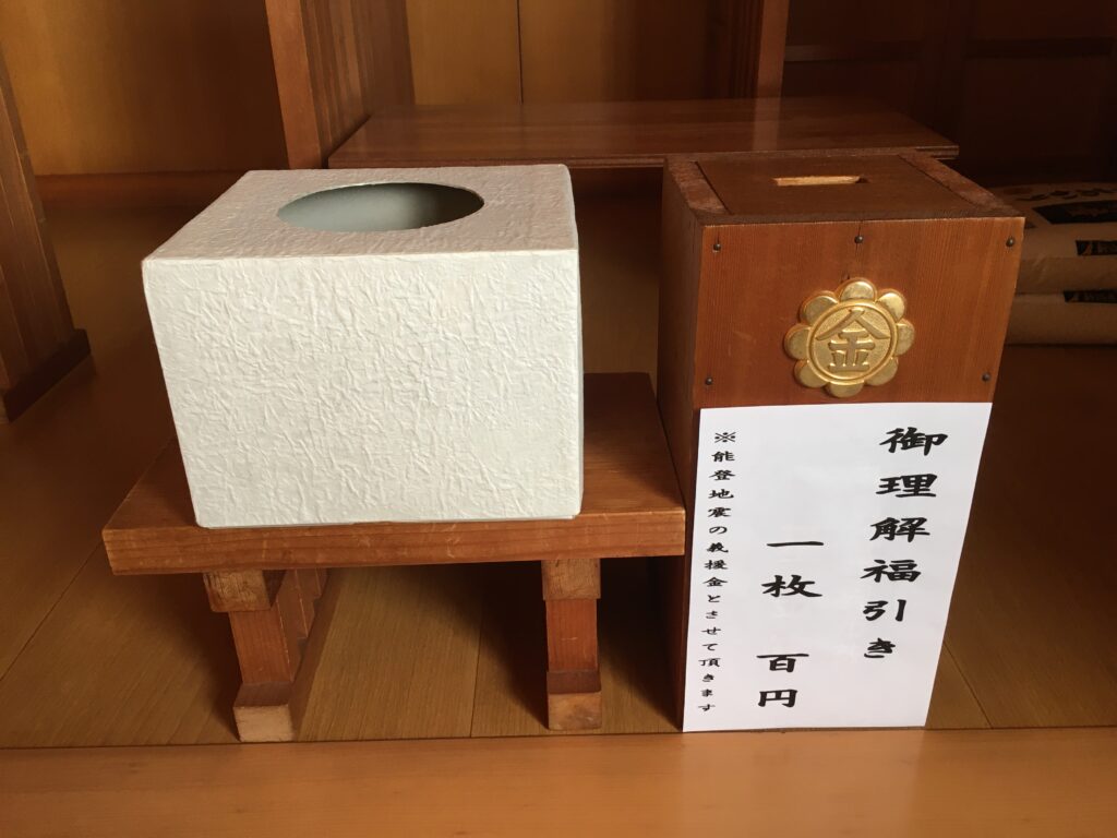 また本日をもちましてご神前に備えておりました御教え福引きをお下げします。福引きの代金として頂いたお金は令和6年能登半島地震の義援金として使わせて頂きます。