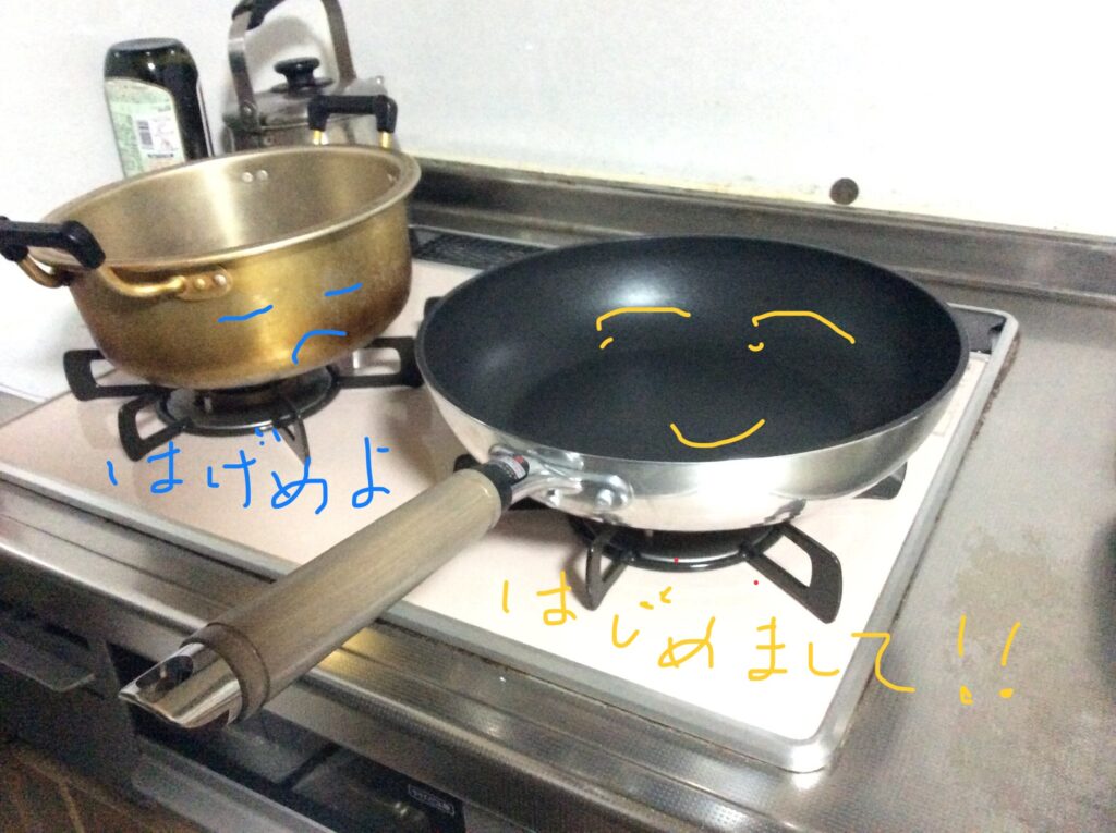 新しいフライパンを帰宅した下の子に見せると盛大な拍手を送られ、上の子は目を丸くして驚き喜んでいました、それぞれの反応が予想外に面白かったです。