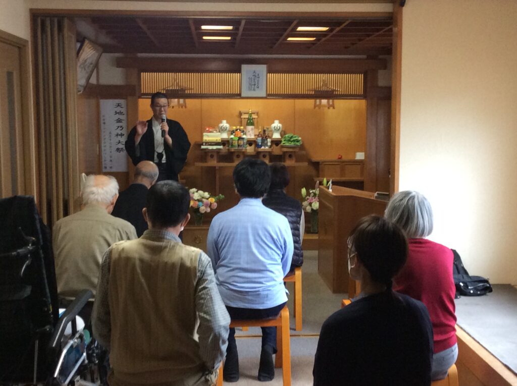とりわけ午前中、定期健診に行かれてから参拝予定の方におかれましては「診察が遅れているので、すみませんが祭典中に伺うようになってしまうかもしれません。」とのことでした。ところが祭典開始時間が迫り、私が祭服に着替えるため二階に上がろうとしたらその方と玄関でバッタリ鉢合わせ、思わず「最高のタイミングで着かれましたね!」とお互い笑顔がはじけ、祭典前に神様から「さあこの心で行け!」と活力を頂きました!