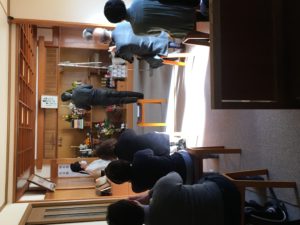 寒信行期間も大詰めを迎えた昨日、午後1時より月初め祈願の月例祭が仕えられました。毎月朔日の月例祭は教会長が祭典後の教話を務められますが、最近声が出しにくくなっているため末永正次先生がお話しの御用を務めました。教会長は電話に出ることも今は見合わせており、皆さまにはご心配をおかけしておりますが、毎週来てくださる往診の先生の見立てでは体調的には特に何も問題はなしとのことですので、日々の御結界での御取次はこれまで通り務めて頂いております。