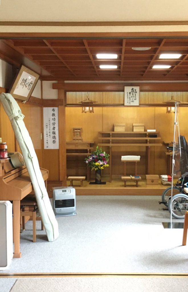 昨日式年祭を仕えたお広前、今度は23日の報徳祭に向け主人は準備に勤しんでいました、 お供え物は全部撤収し御神具をひとつひとつ拭き浄めます、 祭典の度に手を抜くことなく貫かれる御用です。
