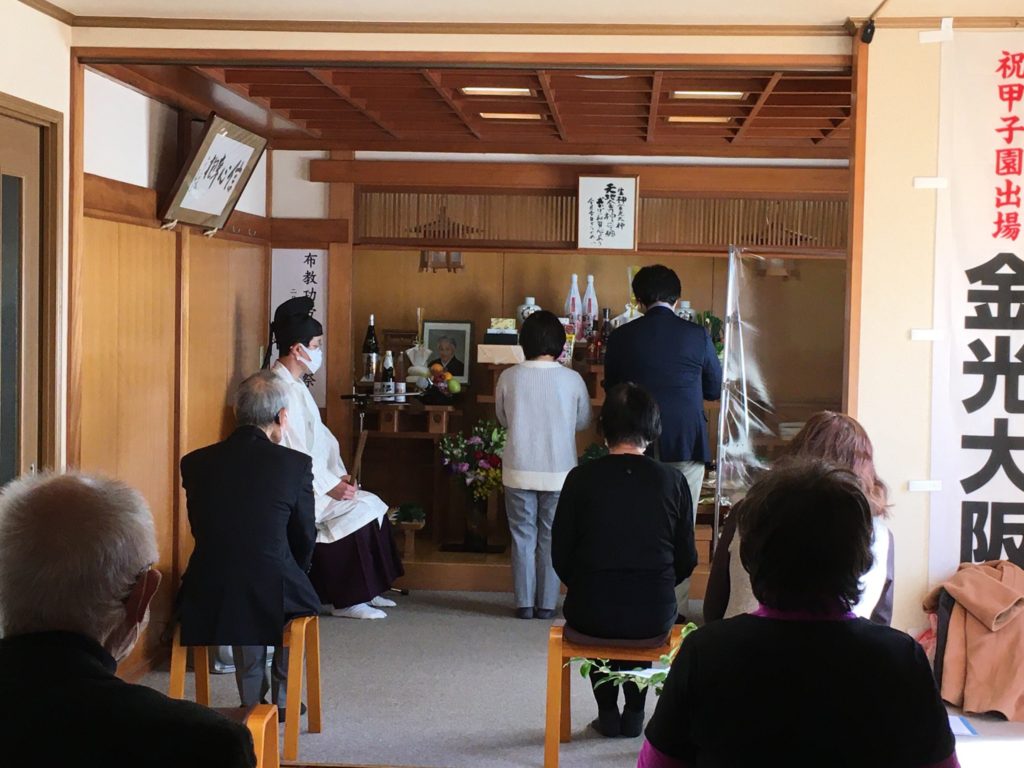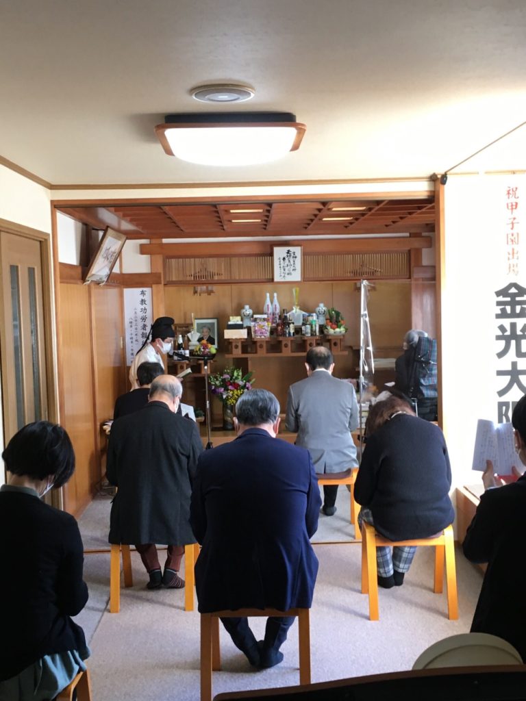 本日亀有教会広前では布教功労者 報徳祭がお仕えになり、 上限8名の3回祭典を予定していましたが昨今の状況下のため申し 込み人数が少ないものの、 午前中2回7名ずつの参拝を頂き、つつがなく執り行わせて頂きまし た。信者さん方は以前ほど頻繁に会えず久々の再会に、 手を取り合わんばかりの喜びがそこここにあふれます、 2回目の祭典にみえた方は亀有駅からの道中、 1回目の参拝の方に声をかけられたと嬉しそうにおっしゃいました 、信心の結びつきは友人や家族とも違う、 言葉にできない特別な縁です。 2回目の祭典は大きな節目を迎えた信者さんに感話をお願いしまし た、幼少時より金光教の教会に縁があり、 御取次を頂いてきた先生方へ御礼を込めたお話でこちらも有り難く 、神様御霊様もお喜びだろうという内容でした、金光教人ですね。