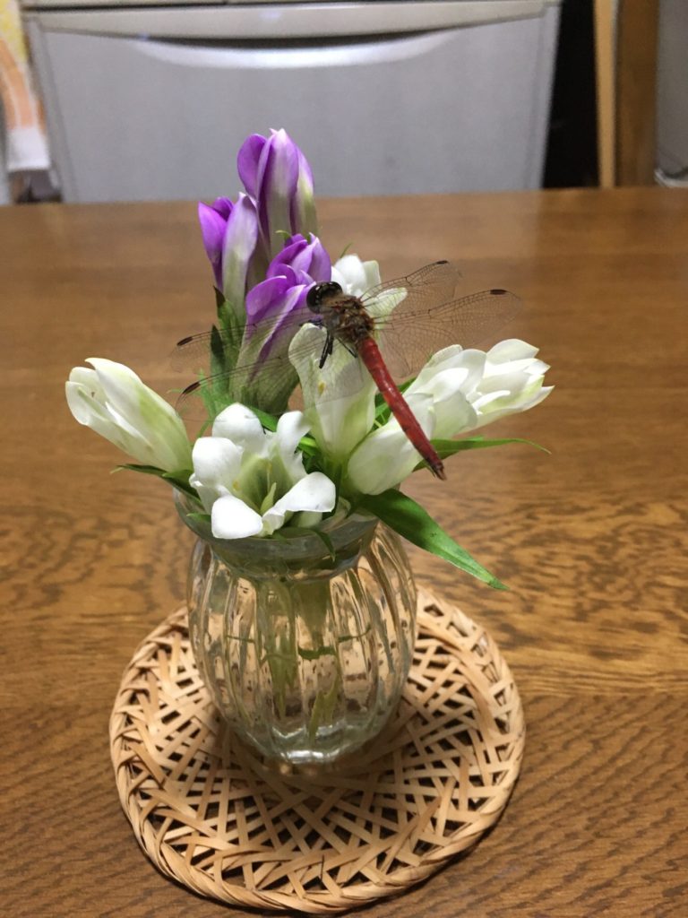 今月2日信者さんから届いた春菊に紛れていた赤とんぼ、