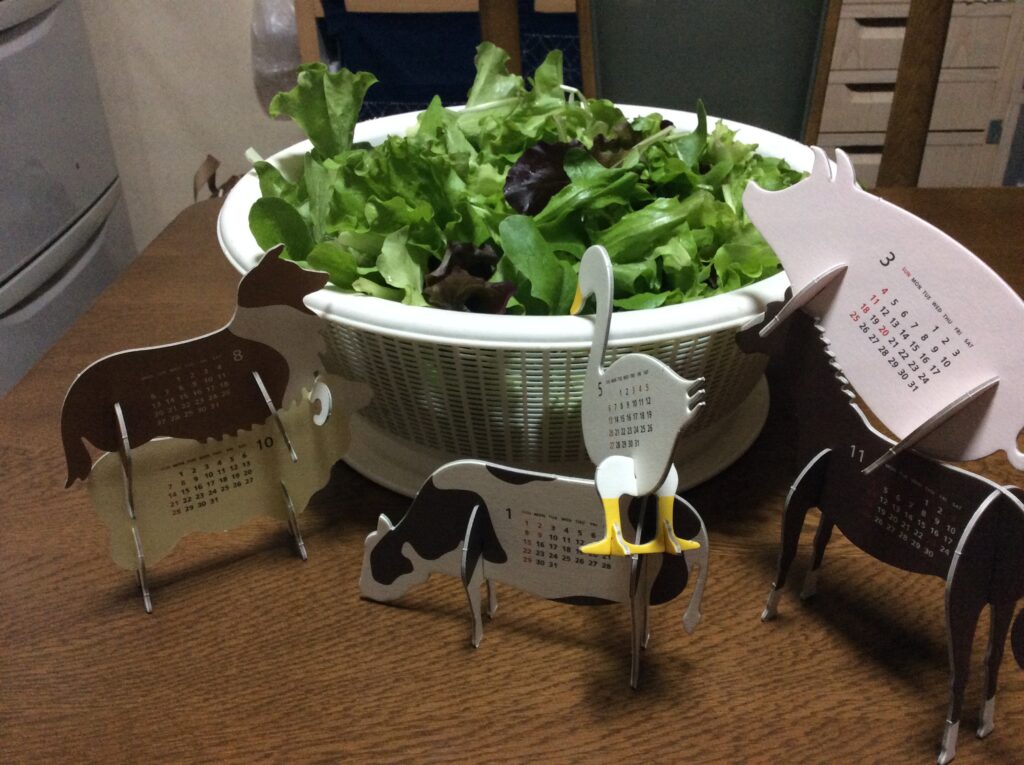 投稿日: 2025年5月17日産地直送!! ご家族用にお野菜を栽培している方、神様へお供えして下さいと四季折々に教会へも届けてくださいます、苦いと思い込んでいる春菊は甘くて香りがさわやか、写真のサラダ菜も無限に食べれそう(笑)、これはこんな味や匂いという観念をごっそり崩され、何より箱から溢れる真心と手間暇かけて整列したお野菜に込み上げる感動、教会の者の身体と心の栄養源になります、勿体無い日々です、今日も一日ありがとうございました。 *ペーパークラフトの動物たちは数年前のカレンダー、かわいくて捨てられない(笑)