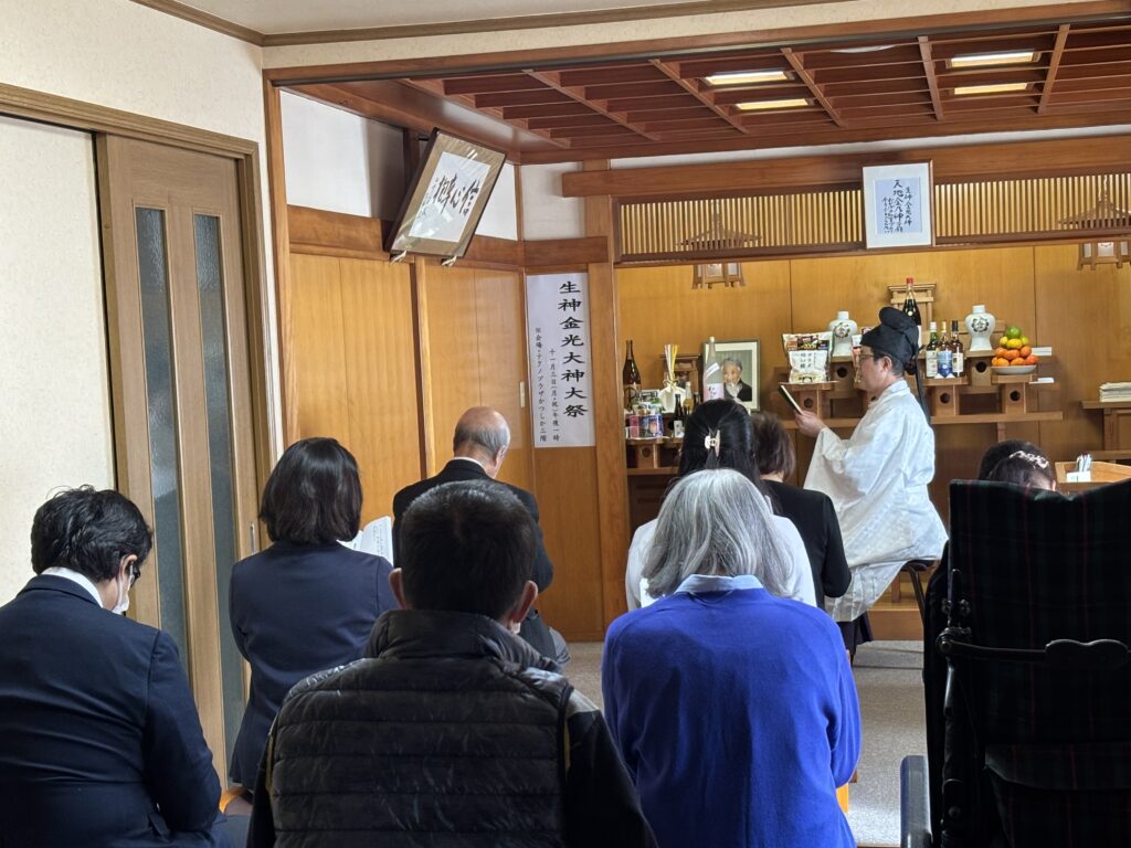 二十四節季の一つである霜降(そうこう)を迎えた本日、「霜が降る」とまでではありませんが、先週までの夏日のような暑さが嘘のように気温がグンと下がった中に、午後1時より初代亀有教会長・髙松和子姫之霊神例年祭がお広前にて仕えられました。