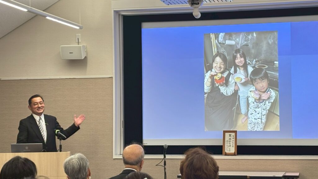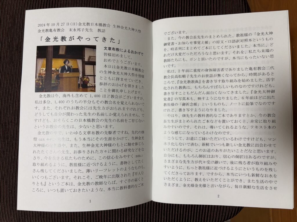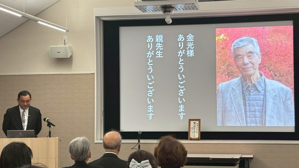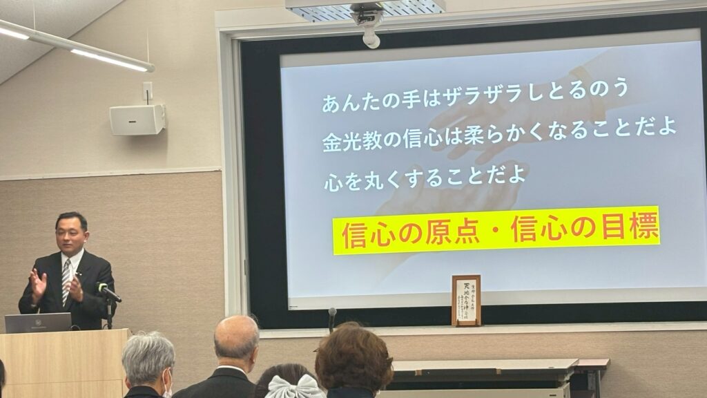 風は強めながらもさわやかな秋晴れに恵まれた去る11月3日、熊本県・日奈久教会長の富永靜行先生を講師としてお迎えし、テクノプラザかつしかを会場に午後1時より生神金光大神大祭が仕えられました。