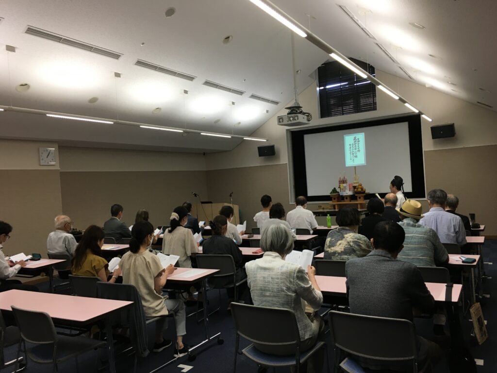 まずは祭典冒頭で一人一人が世界真の平和への思いを寄せて黙祷を捧げ、祭詞奏上では夏のご大祭の発起人である小倉教会初代・桂松平先生が今の世におられるならば、大教会所造営から和賀心造営へとその願いを展開していかれるであろうこと、そしてお互いもその万分の一でもという情念をもって、そのことを願わせて頂きたいということが奏上されました。